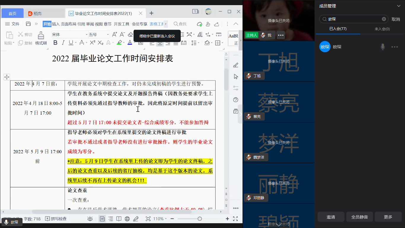此外,经理助理欧琛通报了2022届毕业论文工作安排情况。
