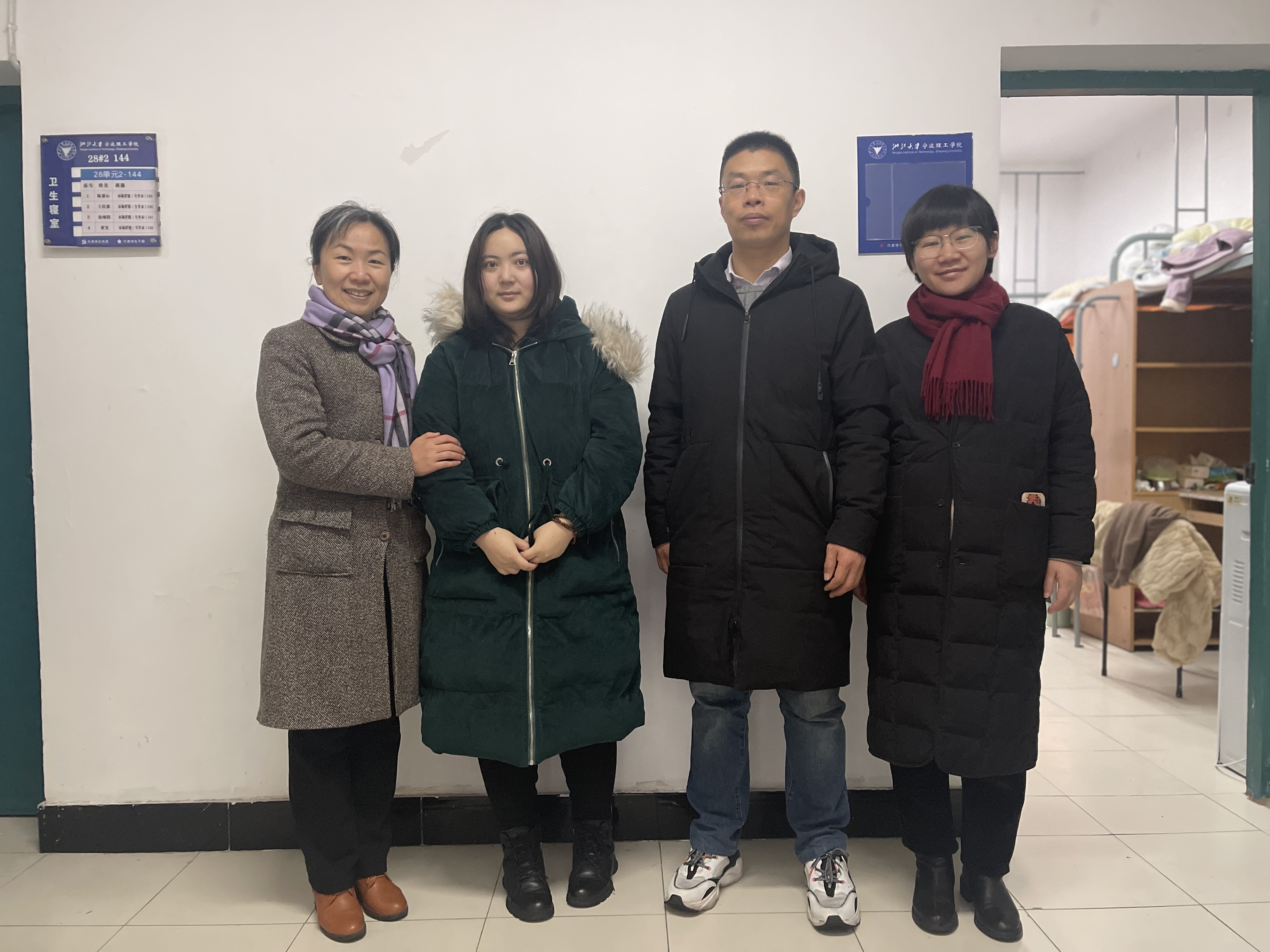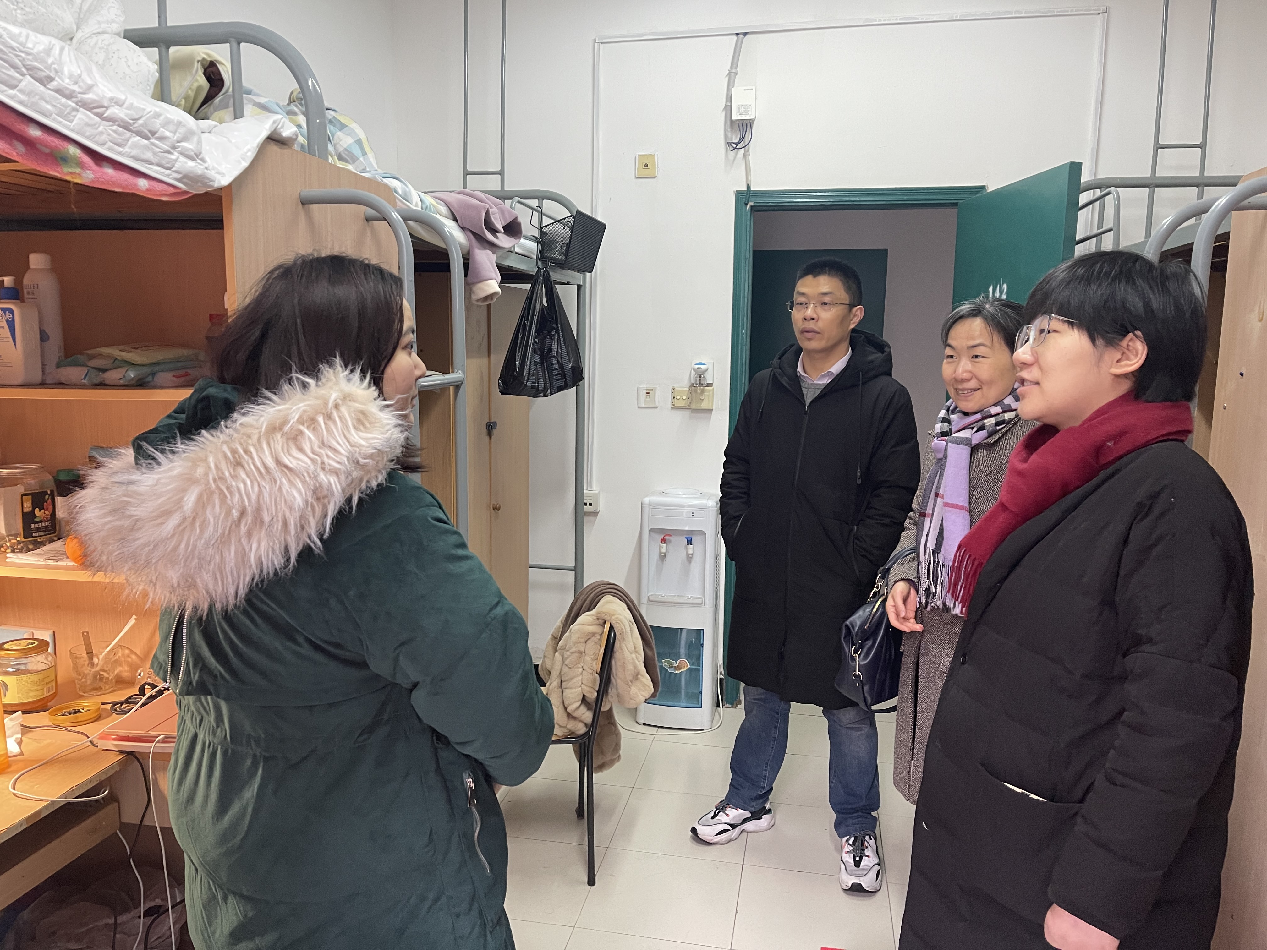 2022年1月26日,在新春佳节即将到来之际,公司党委副书记任凯、思政主管芦美丽、团委副书记张弦、班导师丁旭老师四人走进28幢员工宿舍看望慰问学院寒假留校员工。