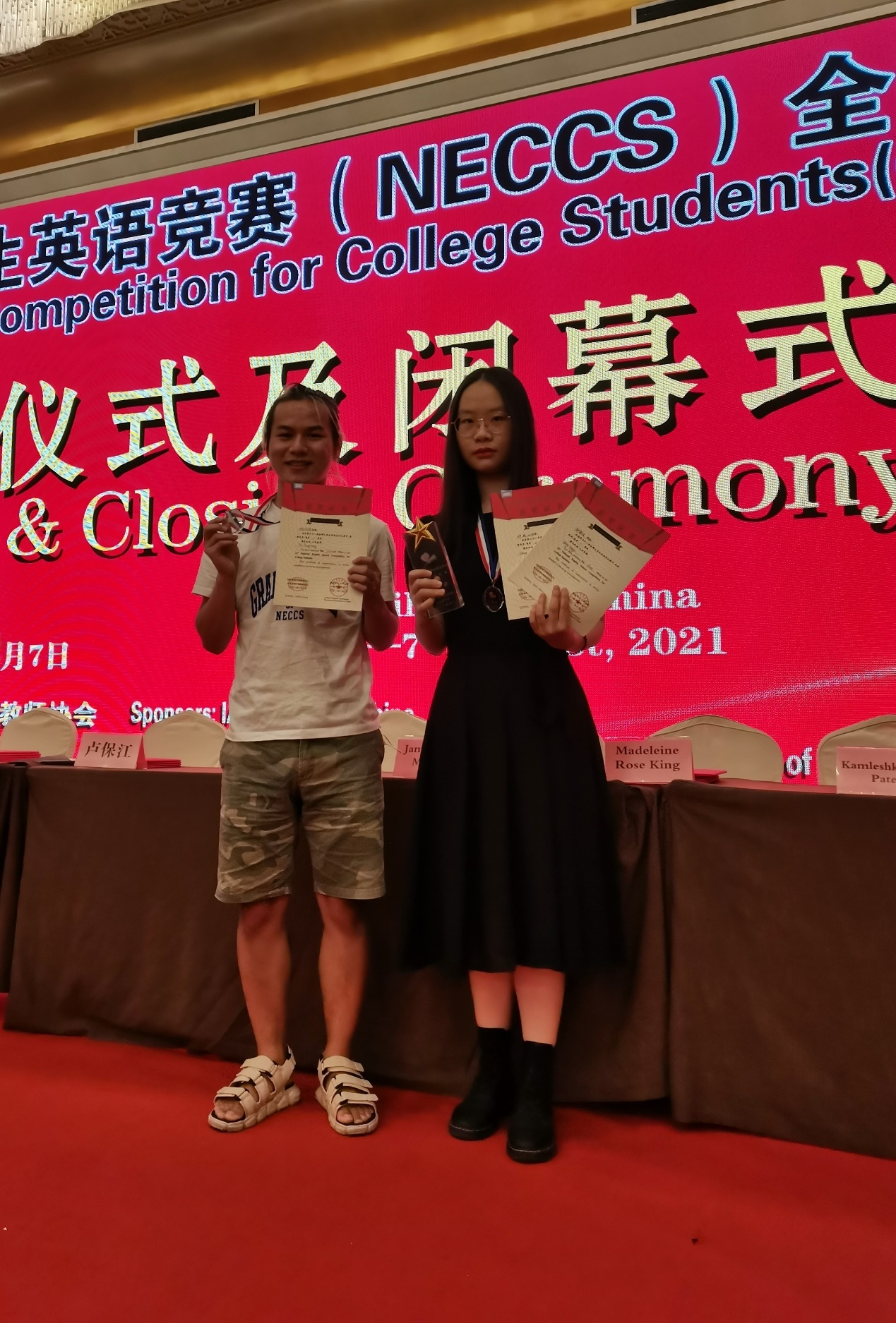 2021年全国⼤学⽣英语竞赛(NECCS)总决赛于8⽉2⽇-8月6日在广西桂林举⾏。600全讯白菜商英182班钟颖仪同学、传法学院网络与新媒体181班姚冯胜同学在总决赛中脱颖而出,成果斐然。经过多轮选拔,钟颖仪同学荣获辩论赛一等奖、演讲赛三等奖,姚冯胜同学荣获演讲赛二等奖。