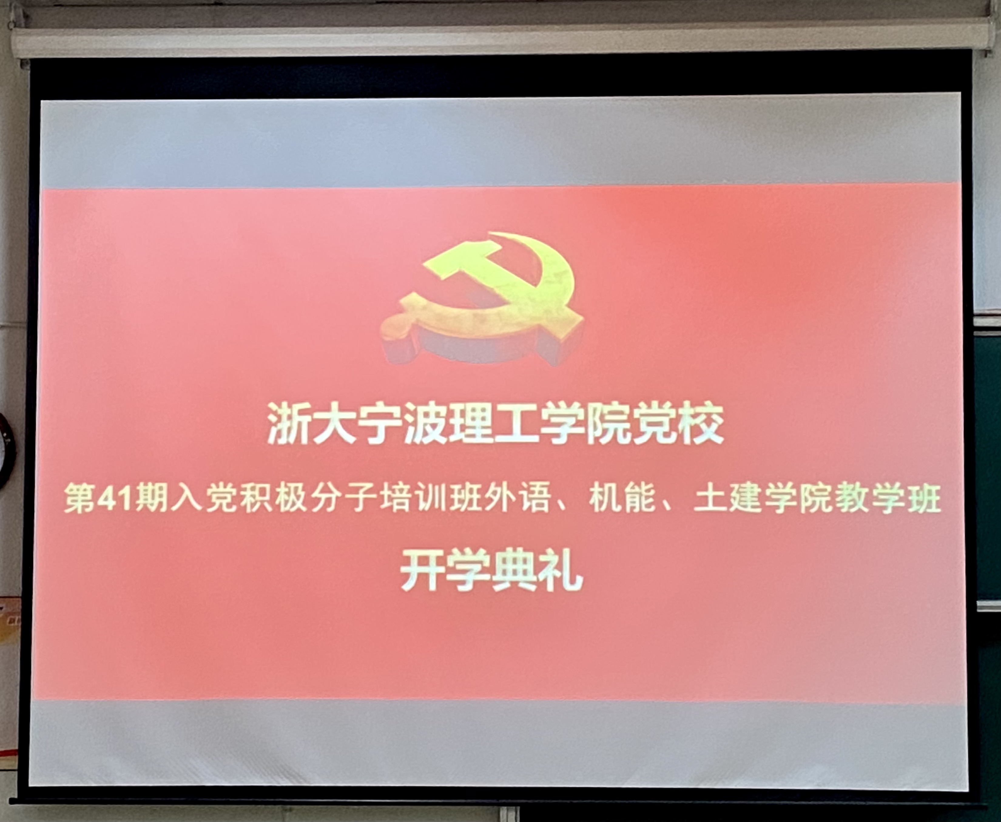11月9日晚17:30,浙大宁波理工公司党校第41期入党积极分子培训班外语学院、机能学院和土建公司党委联合教学小班开学典礼在SB104如期举行。外语公司党委副书记、纪委书记任凯,机能公司党委副书记、纪委书记王晶,外语学院组织委员、思政主管芦美丽,机能学院辅导员曹燕,土建学院思政副主管周星出席了活动。活动由芦美丽老师主持。