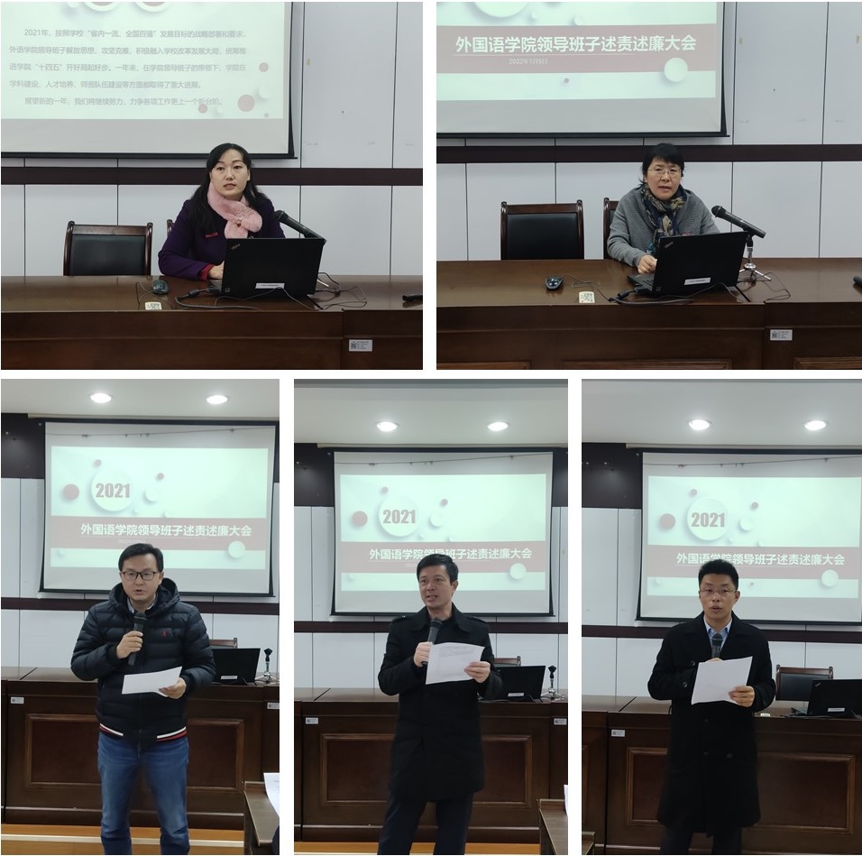 会上,学院经理胡洁代表领导班子作了2021年公司领导班子述责述廉工作报告。她从班子建设、特色工作、重点工作、问题与整改四个方面,回顾了过去一年学院领导班子在完善体制机制改革、落实党风廉政建设、提高学院教学与科研水平、加强团队队伍建设、推进教育国际化、强化特色平台建设等方面所取得的成绩,分析了学院在团队队伍建设、教学科研能力提升等方面存在的不足,并提出了今后努力改进的方向与办法。随后胡洁经理、傅晓宇副书记、蔡亮副经理、周汶副经理和任凯副书记分别就个人情况进行了述责述廉汇报。