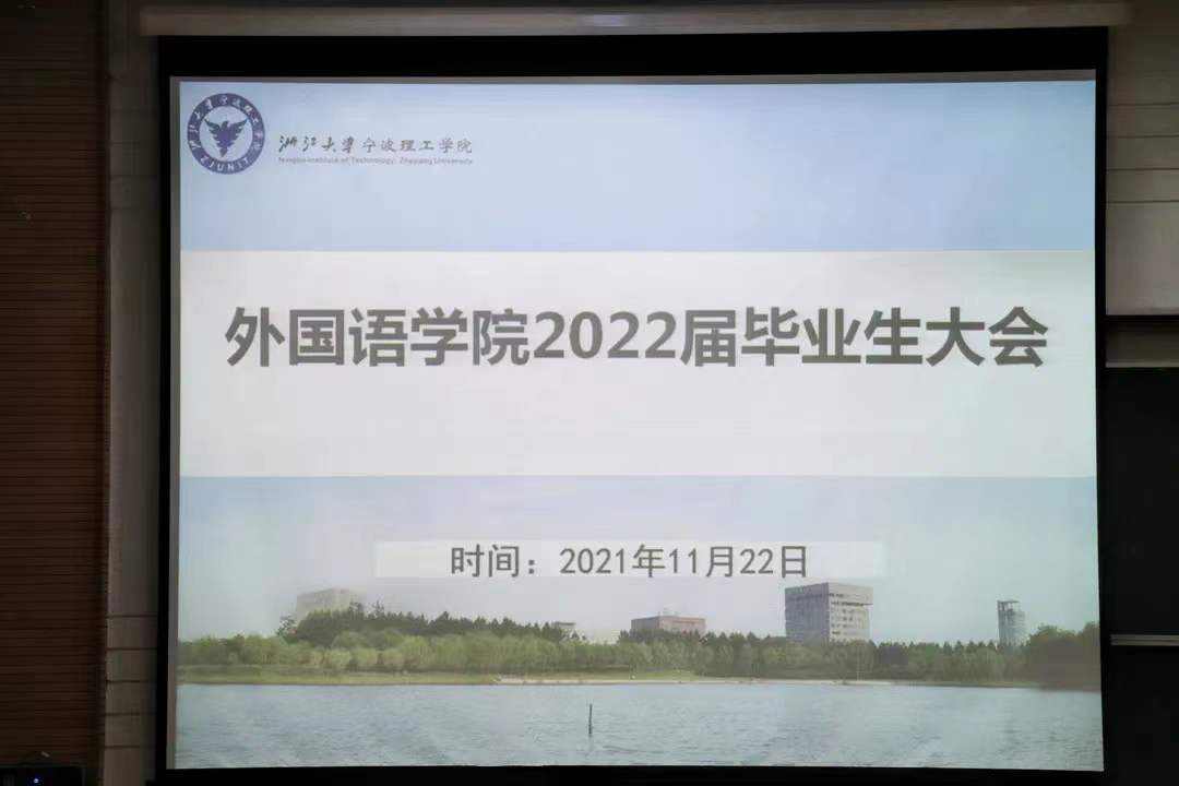11月22日晚上,600全讯白菜2022届毕业生大会在SB102顺利开展。公司党委副书记(主持工作)傅晓宇、党委副书记任凯、外国语言研究所副所长欧琛、外国语言研究所所长助理林晶晶以及盛威国际人力资源中心总监邱敏出席本次大会,思政副主管刘杜娟担任本次大会主持人。