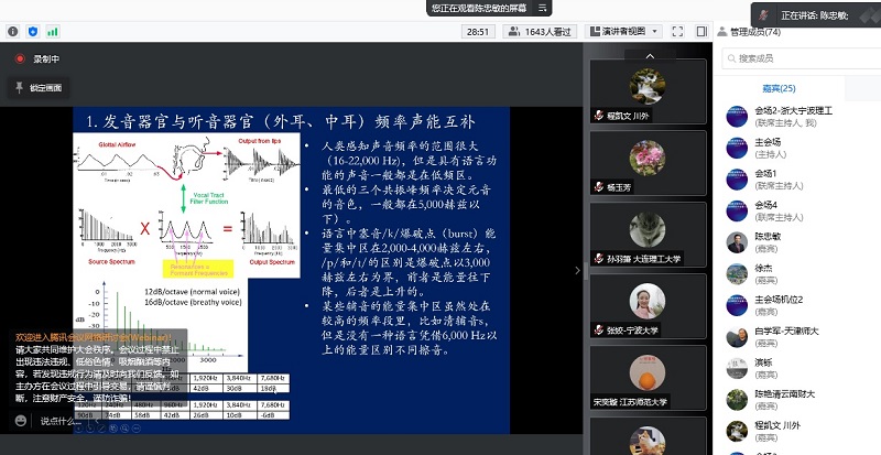 会议期间,共进行了13场大会报告。来自中国科学院心理研究所的杨玉芳研究员、江苏师范大学杨亦鸣教授、香港理工大学人文学院经理李平教授、浙江大学丁鼐教授、英国班戈大学Guillaume Tierry教授、中国人民大学张积家教授、美国加州大学Seana Coulson教授、天津师范大学白学军教授、澳门大学徐杰教授、上海外国语大学蒋晓鸣教授、北京师范大学的卢春明教授、复旦大学陈忠敏教授、华南师范大学翁旭初教授围绕语言理论、语言神经机制、语言学习、语言发展与障碍、语言计算建模、民族语言等主题做了精彩的演讲。此外,会议还安排了64场分组报告,内容涉及语言行为、语言脑机制、语言障碍筛查与干预等。