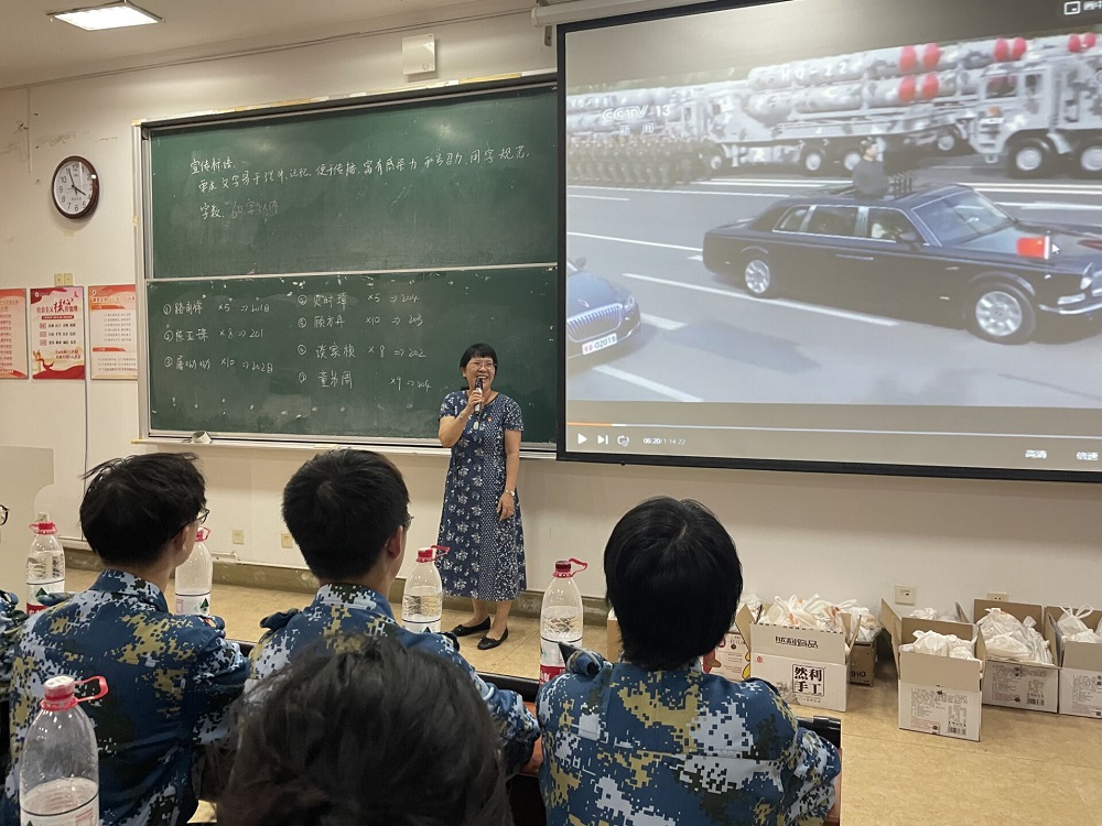 最后学院领导与老师们向参训学员送上慰问品。指导员刘杜娟老师对学院的关心表示感谢,并承诺将不负学院的期望,保证完成军训任务。