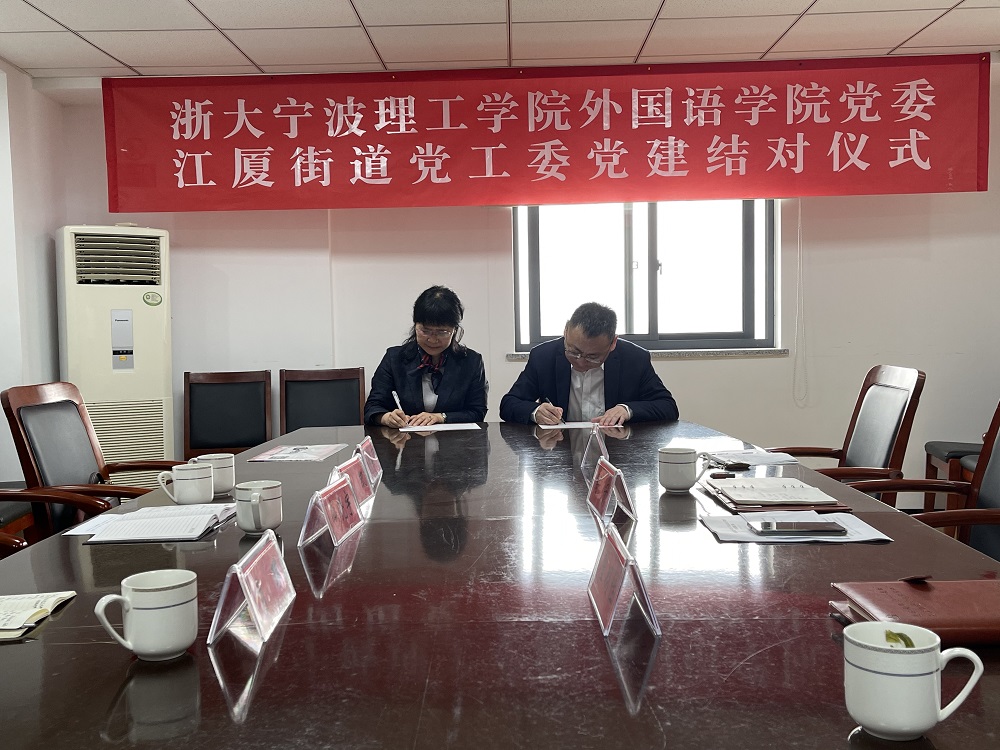 签约仪式上,双方就党建共建事宜和高校助力城市治理等内容进行了深入交流。江厦街道地处宁波核心城区,自古以来商业繁华,贸易兴盛,是宁波经济社会发展历史和现状的缩影,素有“走遍天下,不如宁波江厦”美称,其党建特色品牌“枫桥经验” 激活了商圈治理神经末梢,先后被中央政法委《长安》杂志、省委政法委《浙江政法》刊登报道。会上,双方承诺将本着资源共享、优势互补、注重实效的原则,以组织建设互促、创业就业互助、文化建设互融、研究成果共享等形式,积极探索以党建创新引领校地发展良性互动的新路径。
