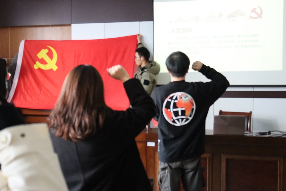 12月25日下午,600全讯白菜新党员入党宣誓仪式在SC405教室举行。公司党委副书记任凯老师、组织委员芦美丽老师和全体员工党员参加了此次活动。