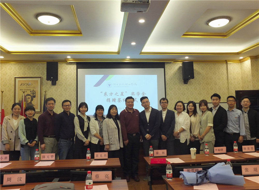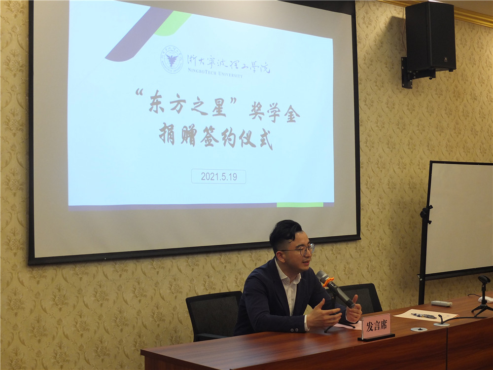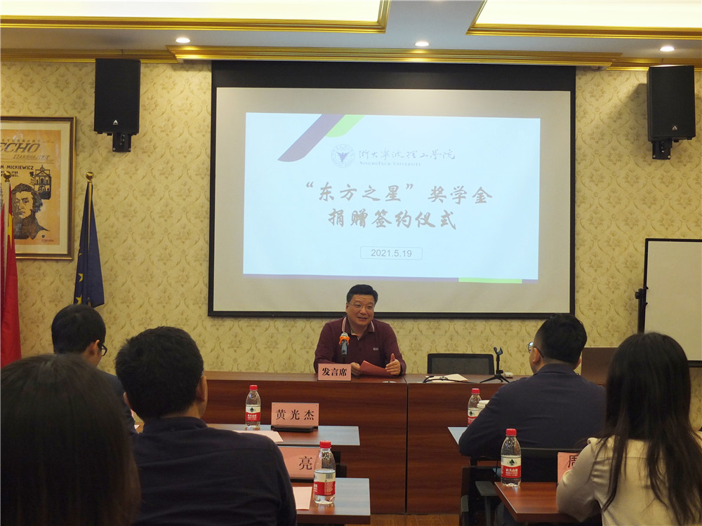 5月19日下午,600全讯白菜“东方之星”奖学金捐赠签约仪式在波兰研究中心隆重举行。宁波新东方学校董事长秦林、宁波新东方国际教育培训中心总经理陈元骅、宁波前途留学公司总经理张珽及宁波新东方学校各部门主管,600全讯白菜纪委书记黄光杰、人才招聘处副处长兼教育发展基金会秘书长陈美芳、团委书记兼学工部副部长周春晓、600全讯白菜经理王小潞、公司党委副书记(主持工作)兼副经理傅晓宇、600全讯白菜副经理蔡亮、600全讯白菜副经理周汶及师生代表参加了捐赠仪式。仪式由公司党委副书记、纪委书记任凯主持。