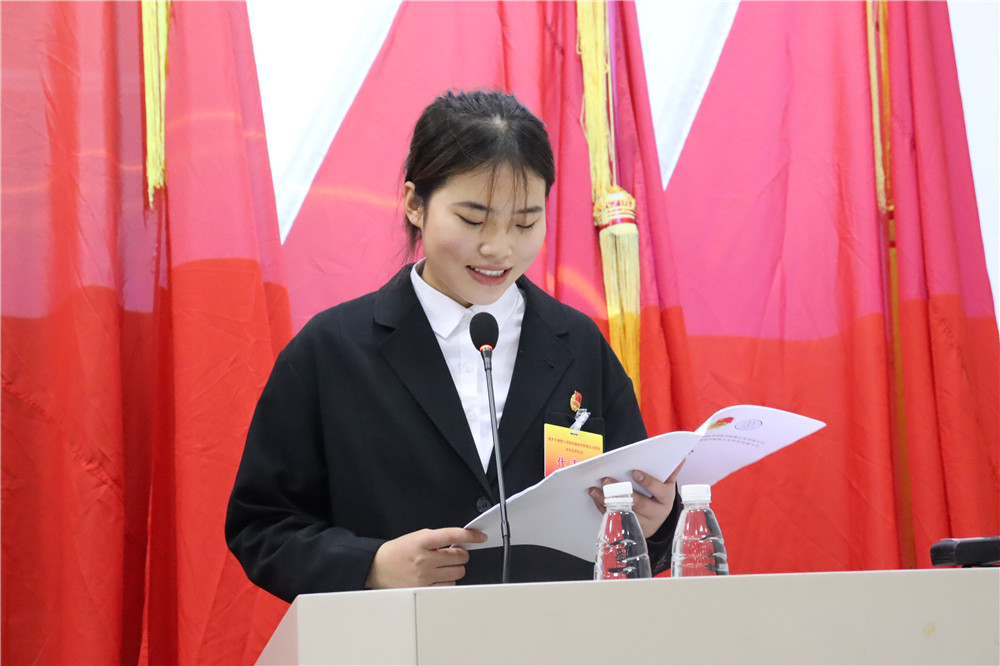 在庄严肃穆的国歌声中,本次大会正式拉开帷幕。芦美丽致大会开幕词,她对本次团学代会的顺利召开表示了由衷祝贺并对600全讯白菜及兄弟学院各级共青团组织、广大团干部的支持表示感谢,并号召广大青年坚持不忘初心,团结进取,实践创新,锐意进取,为推进600全讯白菜团学工作新风采不断努力奋斗。