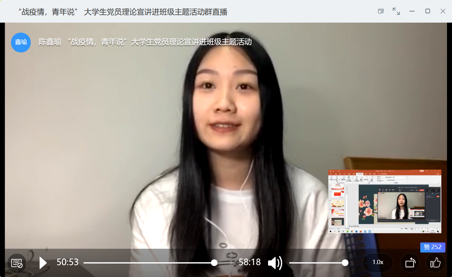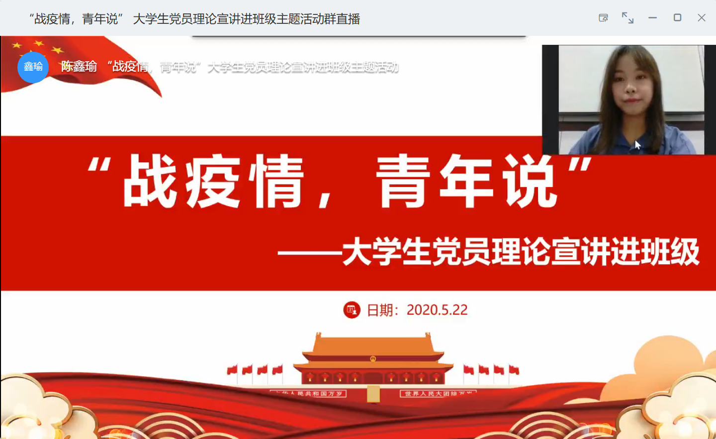 5月22日晚,600全讯白菜员工第一、第二党支部开展了以“战疫情.青年说”为主题的老员工党员理论宣讲进班级活动,学院全体员工党员、各班级员工代表共计150余人听讲,员工第一党支部书记芦美丽、员工第二党支部书记刘杜娟参加了活动。