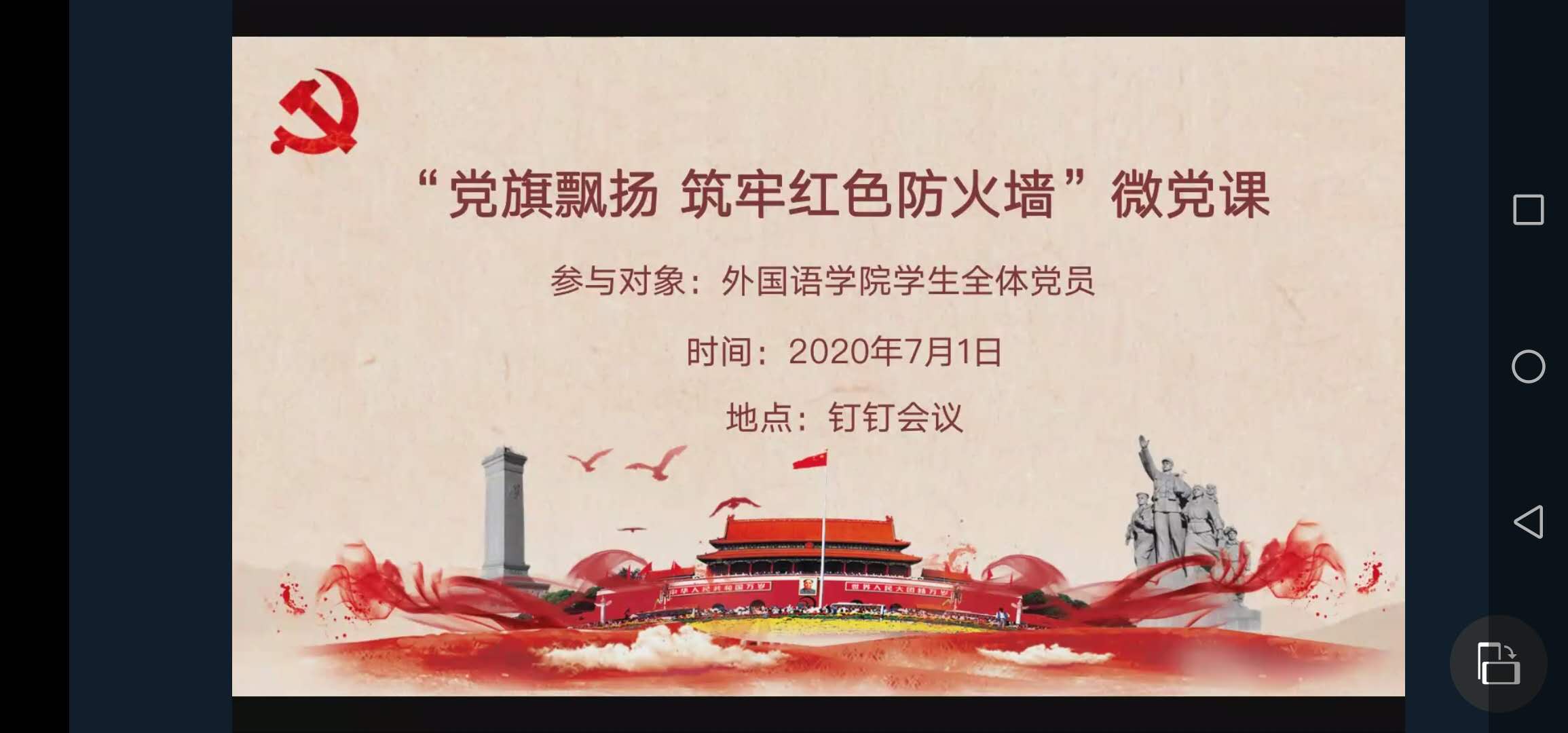在中国共产党第99个生日之际,7月1日晚,600全讯白菜员工第一、第二党支部组织全体员工党员在钉钉群集中观看了《高公司党组织战“疫”示范微党课“七一”专场》。公司党委副书记任凯、员工第一党支部书记芦美丽、员工第二党支部书记刘杜娟参加了活动。