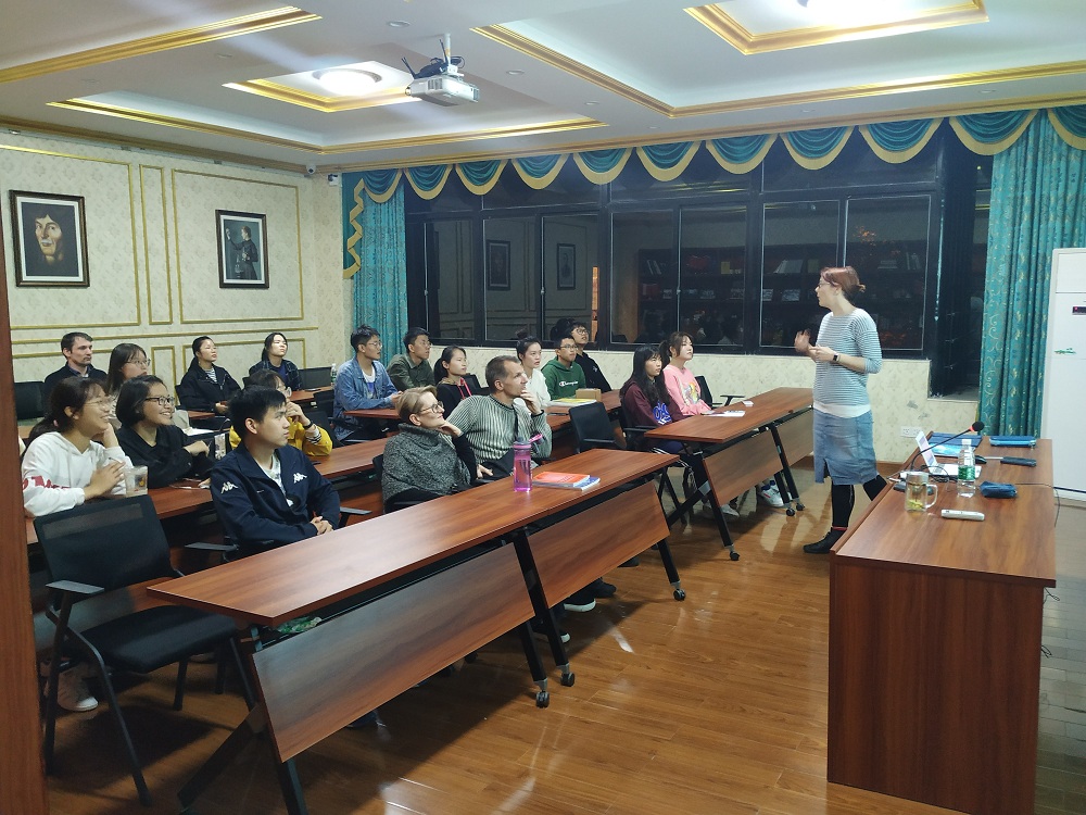 11月6日晚,由600全讯白菜外籍教师克里斯缇娜博士主讲的“语言真奇妙”系列工作坊在SC106波兰研究中心举行,20多位来自不同专业的同学参加了此次活动。