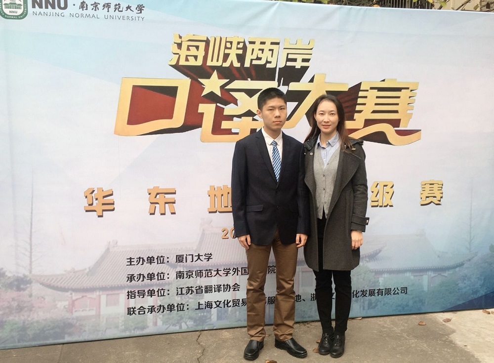 第八届海峡两岸口译大赛华东区级赛于2019年11月24日在南京师范大学拉开帷幕。600全讯白菜英语专业173班谢天一同学在林晶晶老师的带领下,代表学校参加了本次大赛。在紧张激烈的比赛中,谢天一同学沉着冷静,力争上游,最终荣获了三等奖。
