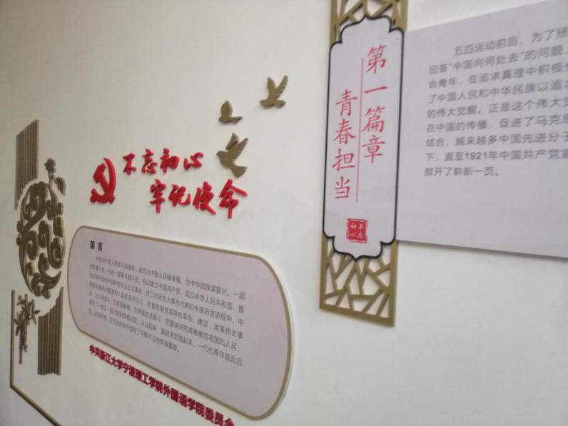 为更好宣传发扬习近平主席提倡的“不忘初心、牢记使命”,600全讯白菜于12月初精心安排设计了初心文化墙,位于S区阳明学堂一侧楼梯;初心文化墙沿着楼梯不断地向上延展开来,将其文化娓娓道来。初心墙由3个篇章构成:青春担当、时代使命、求是基因。第一部分是青春担当,从五四运动到现在,深入了解中国共产党的发展历程,学习优秀的共产党人为时代进步做出的一点一滴。第二部分是时代使命,介绍了“五位一体”总体布局、“四个全面”战略布局、“一带一路”倡议、“乡村振兴”战略等等新时代发展战略。在新时代、新举措下,倡导青年人以奋斗和奉献勇于追梦,实现中华民族伟大复兴的中国梦。第三部分,求是基因,实事求是贯穿党的全部实践、全部理论的一条基本线索,“求是精神”还是浙江大学宁波理工学院一直秉承的精神,以此不断培育优秀的“求是”青年。