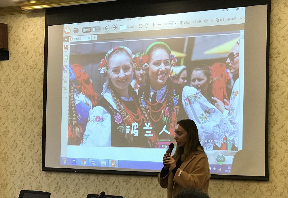 本次座谈会嘉宾分别是来自浙江大学传媒学院的波兰籍研究生莫莉卡(Marta Mońko)和浙江大学宁波理工学院2019春季Erasmus项目学期交流生柯楚萱。在留学经历分享环节,莫莉卡以她在华留学的亲身经历,介绍了中波学习生活的不同,从差异中带领着同学们探索波兰。随后,柯楚萱也分享了“新鲜出炉”的波兰职工活和感悟。同学们聚精会神、兴趣十足。在自由互动环节,同学们更是踊跃提问,两位嘉宾耐心解答,气氛十分融洽。