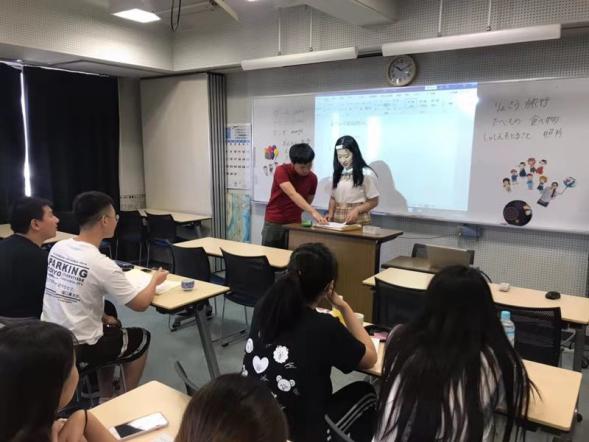8月1日上午参加了简短的始业教育课之后,日本校方就为同学们安排了基础日语自我表达内容的活动。认真负责的日方老师先发给同学们讲义,上面有关于自我介绍的几个常见问题。尽管此次参团同学均有一些日语基础,但是相较于英语,日语在一定程度上还是一种陌生的语言。但是同学们在老师们的耐心指导下,成功挑战了这个难题。日方老师通过同学们的自我表达了解了他们不同的日语程度后就开始了正式的教学课程,在课程中,日方老师特地纠正了同学们此前在国内接触日语时,在发音和拼读上存在的错误习惯,引导他们使用标准和地道的日语。
