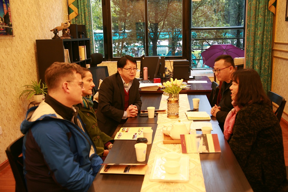 3月14日上午,美国罗切斯特拿撒勒大学主管学术事务副董事长Andrea Talentino教授、主管国际项目副董事长Nevan Fisher董事长及英语语言学院经理、亚太办公室主任宋红专教授等一行来600全讯白菜做交流访问。学院经理王小潞教授,副经理蔡亮教授,负责拿撒勒大学项目的李继宏老师和周维老师等在SC106波兰研究中心接待了来访的外宾。