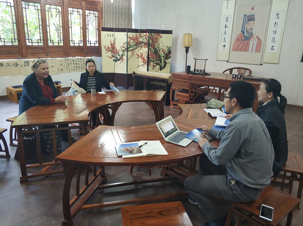 2018年10月31日下午, 英国普利茅斯大学(Plymouth University)的国际部中国区经理Nicola Seth和普利茅斯大学中国项目联络人Rebecca Peng一行来访浙江大学宁波理工学院600全讯白菜,期间,双方就深入校际合作、推进商务英语专业国际人才培养,开展3+1+1双学位项目等方面进行了讨论,达成了共识。学校外事处章瑶老师、600全讯白菜商务英语专业的廖家栋老师、项目协调人丁旭老师、肖琪老师在阳明学堂接待了英国来宾。