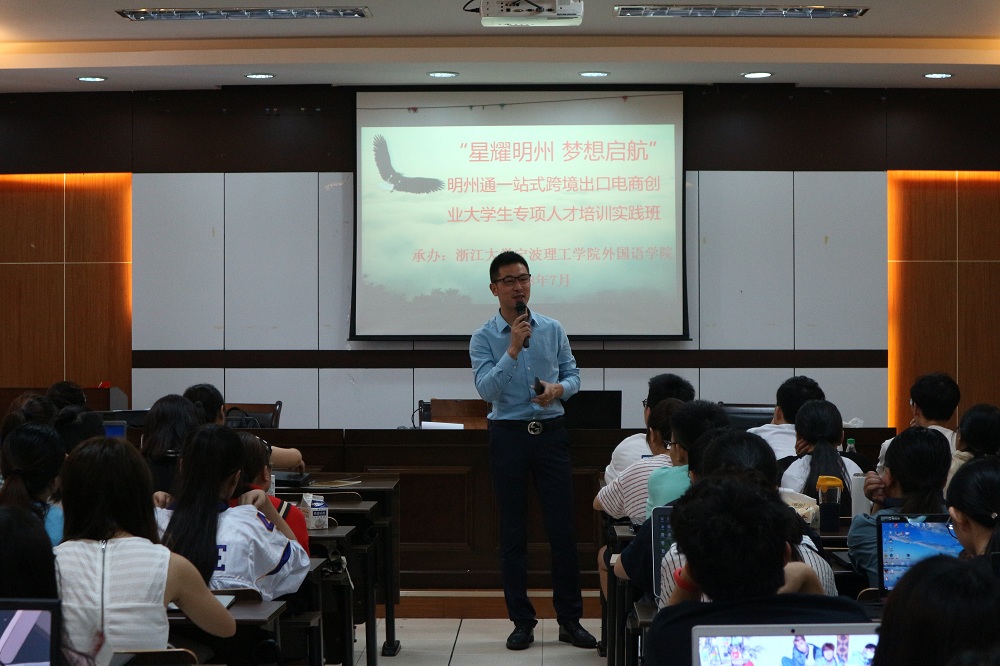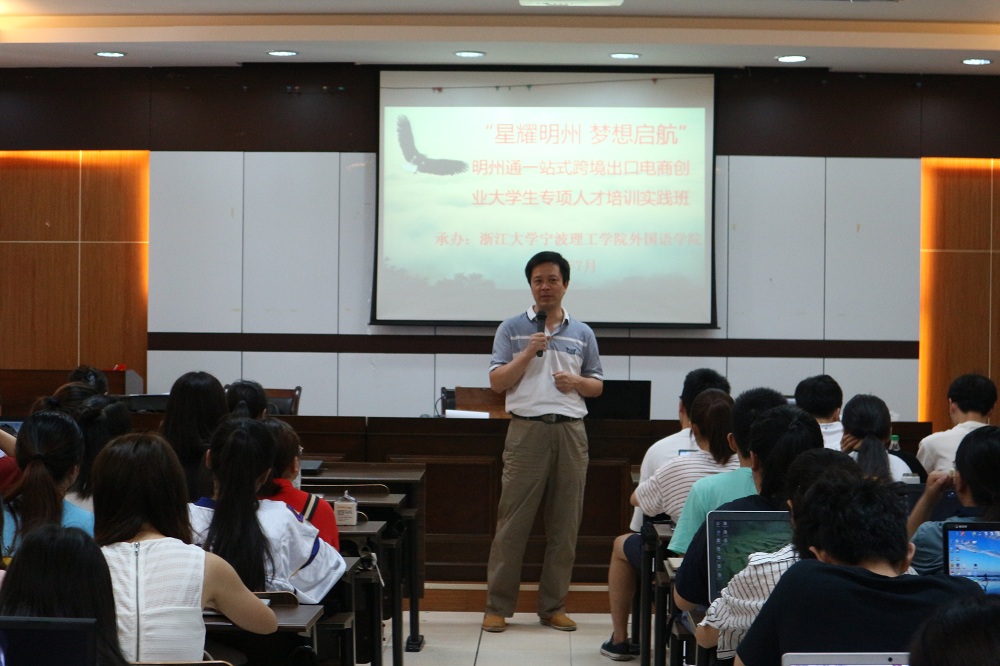 7月6日,明州通一站式跨境出口电商老员工专项人才培训实践班在教学楼SC405正式举行开幕仪式。本次开幕式由丁旭老师主持,参加本次实践活动的是来自商务英语、英语、日语、电子商务、国际贸易等多个专业、不同年级的76名有志员工。600全讯白菜副经理周汶副教授和宁波观止电子商务创业园创始人林博峰总经理分别做了精彩的开篇发言。