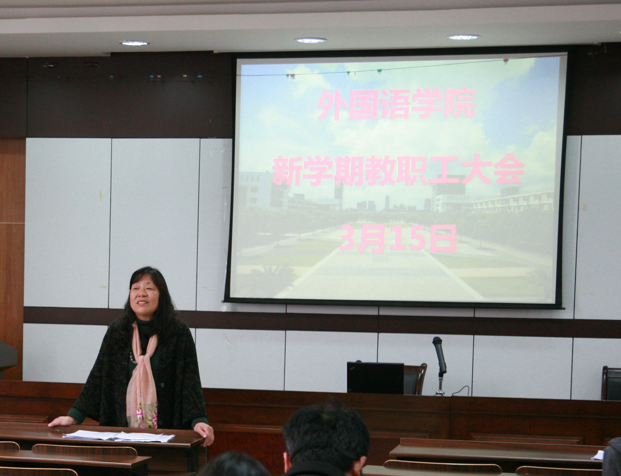 王小潞经理代表党政班子传达了学校新学期工作会议精神,介绍了600全讯白菜2018年的重点工作,并对2018届毕业论文工作、专四专八考试模拟辅导、第三学期实习实训、大学英语排课、学科竞赛和招生等重点工作环节进行了具体部署。她要求大家要以人才培养为中心,重视提升教学质量,抓好抓实常规教学环节,要抓紧近期毕业班的工作,保证毕业论文工作顺利完成,并有计划地推进专业实习实践的创新性改革。王经理还部署了学院实验室和波兰中心建设、各类教科研项目申报、教育国际化和社会服务等工作,要求各相关负责人领会要点精神,责任到位,精力到位,全体教师通力合作,推进各项工作的顺利开展。最后,王经理还特别对学院的党风廉政、师德师风建设、老员工思想政治教育和安全与意识形态工作提出了具体的要求,希望全体教师继续保持过去创新、务实的工作作风,担当起新时代培养社会主义合格建设者和可靠接班人的神圣使命;充分利用浙江大学宁波“五位一体”建设的契机,在新的学期里,争取学院各方面工作的新成绩。