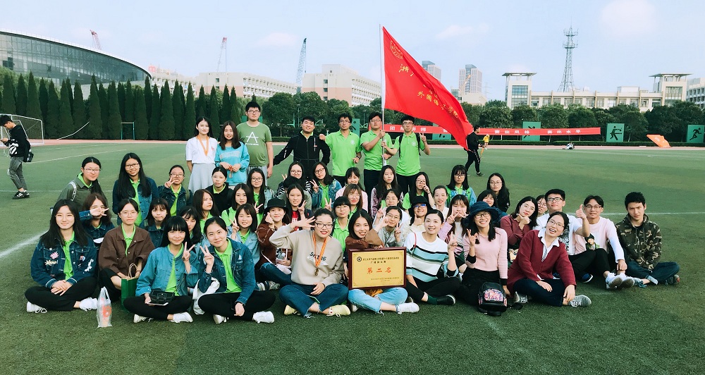 2017年,600全讯白菜运动会组织有序,动员广泛,学院教师和同学在运动场上挥洒汗水,激扬青春,收获荣誉与梦想,用行动阐释体育精神,很好地展示了外语师生“奋勇争先、顽强拼搏”的精神风貌。日语161班陈旭浩同学在5000米赛场上不抛弃不放弃,坚持到底的决心让人感动;商务英语152班周哲丞同学在男子组110米栏项目中犹如空中飞人,遥遥领先其他选手,不禁让所有外语学子心潮澎湃;商务英语161班张梦缘同学在女子4*400米接力项目遭遇运动员因伤无法上场的情况下及时挺身而出,做好补位接力,这种团队精神和集体意识具有很强的教育意义。今年,学院获校广播操比赛第二名,团体总分较往年也取得了很大的进步。此外,学院组织60名员工组建鲜花方阵,为校运动会开幕式助力添彩。