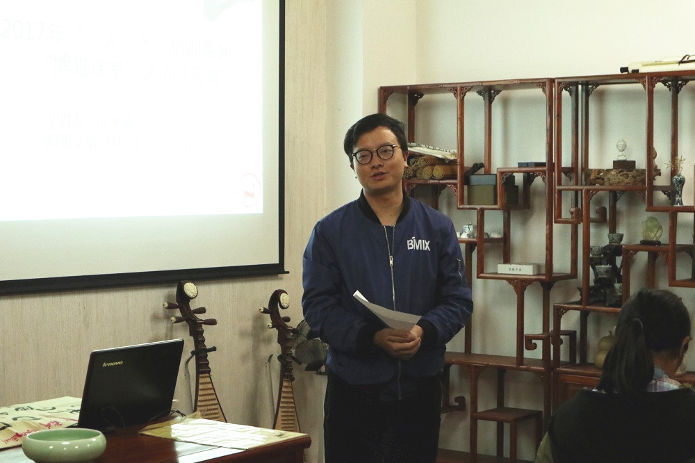 11月15日下午,学校2017年“博雅课堂”书法专班在阳明学堂正式开讲,校团委副书记夏文来老师出席开班仪式并致辞。