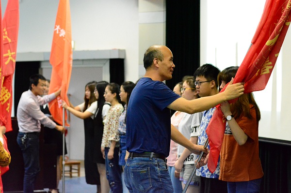 会议开始,谌晓煜书记结合学院历年暑期社会实践开展情况做了动员,鼓励同学们立足学院特色持续进行创新,并在保证安全的情况下不断提高实践质量。随后,学院团委书记芦美丽介绍了2017年暑期社会实践筹备情况,指导老师代表刘杰、立项团队代表三叶草生命关怀实践团队周悦、用声音叙事—阳明文化的海外传播探索实践团先后进行讲话与展示,在场老师为各立项团队授旗。