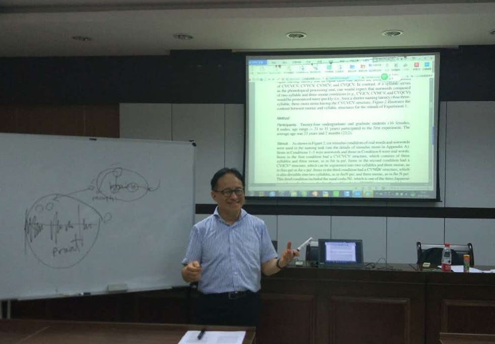 9月19日下午,日本名古屋大学玉冈贺津雄教授应邀来600全讯白菜SC405会议室做了题为“日语语音处理的实验检证”的学术讲座。教授是日本国内知名的心理语言学家。为了满足更多非日语学习者的听讲要求,此次讲座全程用英语演讲,讲座由日语专业黄郁蕾老师主持。