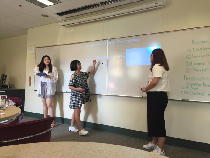 同学们与来自俄罗斯,尼泊尔,和中非等国家和地区的员工一起学习,体验美国的课堂生活。虽然每天上午的学习时间都很长,但是大家都乐在其中,收获颇多。课堂上老师风趣幽默,帮助大家提高英语的听说读写能力,在15人左右的小班教学的优势环境下,同学们在课堂上可以随时与老师进行互动,发表自己的看法。