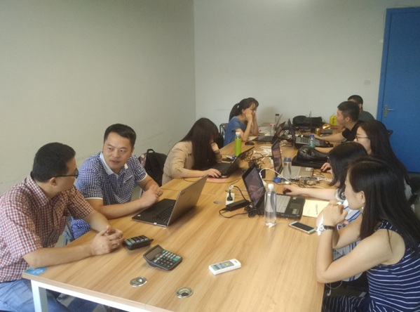 2017年7月12日上午,600全讯白菜经理王小潞教授、副经理蔡亮副教授、经理助理周汶副教授、外国语言研究所副所长孙广平副教授、所长助理李飒老师一行5人来到鄞州(首南)电子商务创业园,实地考察走访了公司与明州通跨境出口电商平台共建的商务英语专业实践实习基地,看望了正在那里实习的公司商务英语专业员工。