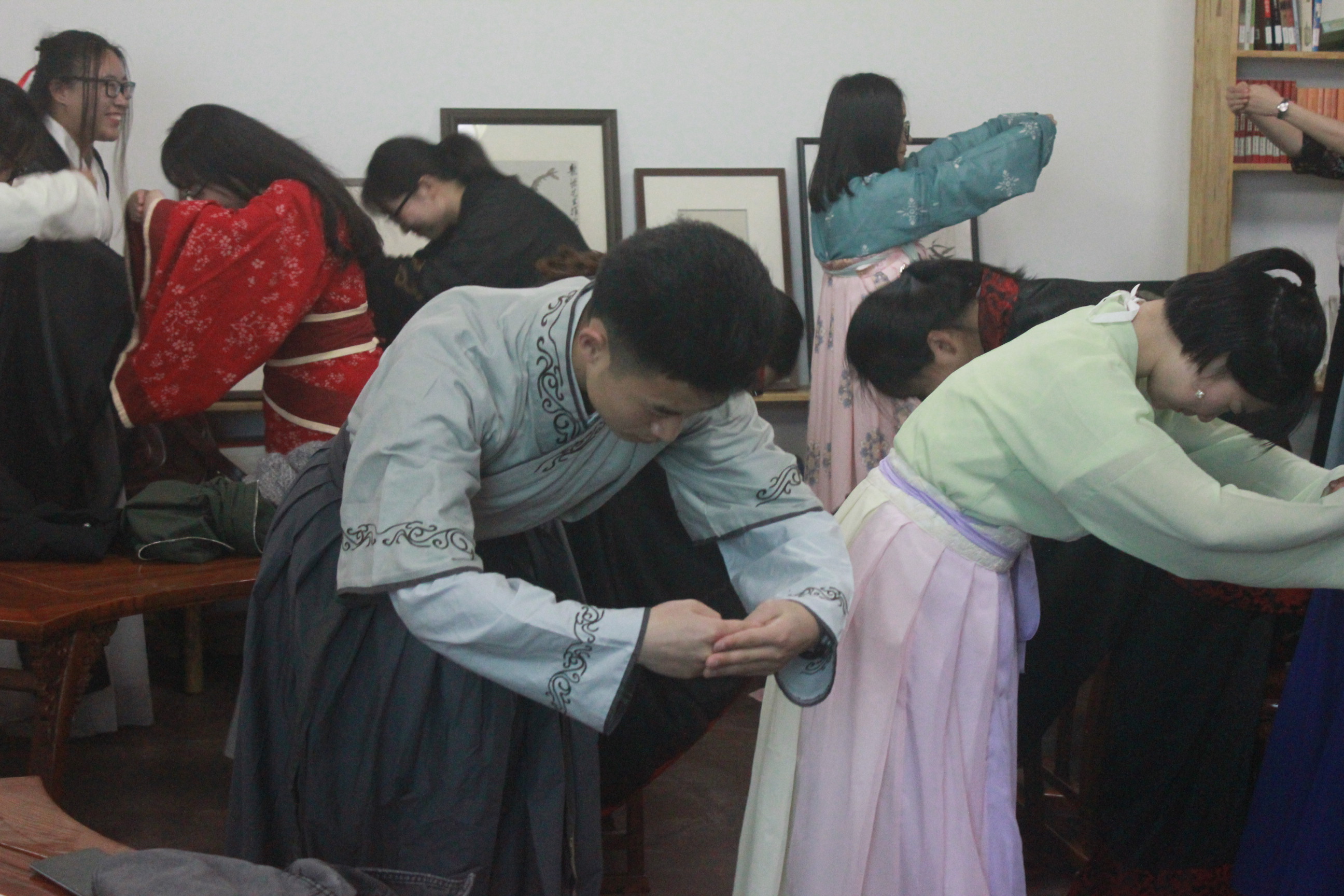 汉服,是汉族的传统服饰,具有独特的汉民族风貌性格,是中国“礼仪之邦”、“衣冠上国”风采的重要体现。为推广汉服文化,4月6日晚,博雅课堂第三讲“汉服艺术及现代传播”讲座在阳明学堂顺利举行。宁波国风汉文化公益团队负责人史项杰老师任主讲,博雅课堂第二期全体学员、子衿汉服社等30余名师生参加。
