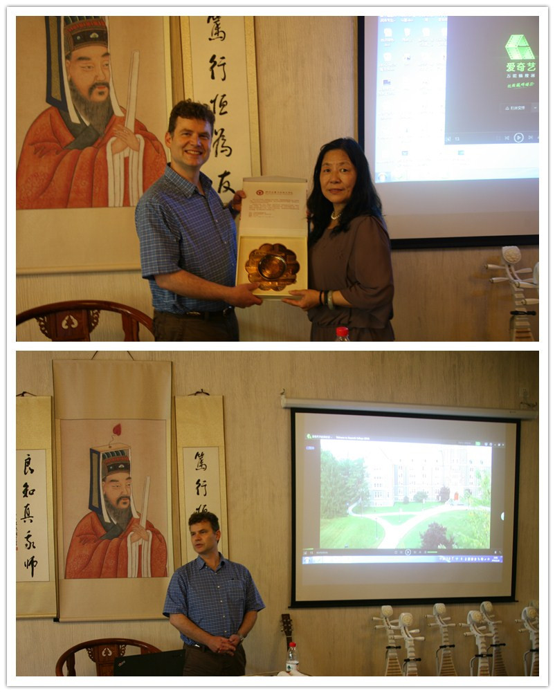 会谈后,Nevan Fisher博士还为师生们带来了一场题为“常青藤的摇篮——罗切斯特拿撒勒大学”的宣讲会。Nevan Fisher博士从学校历史,培养政策等多方面给在场师生介绍了这所着眼于培养精英人才的学校特色,并耐心的回答了员工关心的关于校园安全,奖学金申请和学习时间安排等问题。