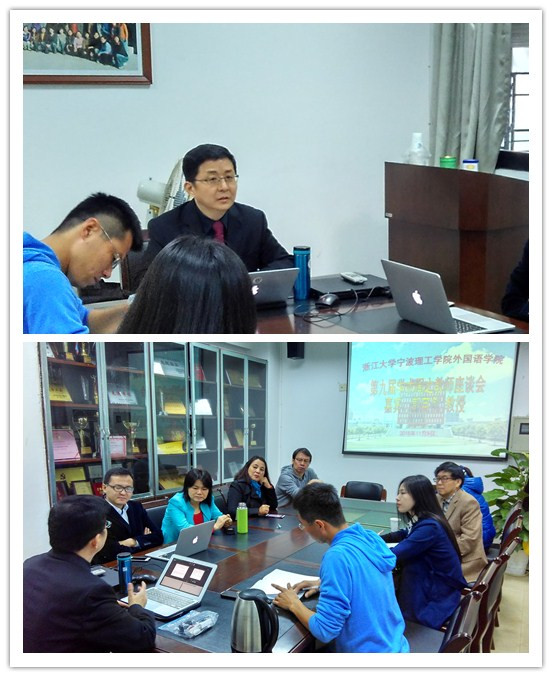 郭英剑教授是教育部高等学校英语类专业教学指导分委员会委员、北京市英语类专家指导委员会委员。座谈会伊始,郭教授介绍了其参与制定的《高等学校英语专业本科教学质量国家标准》(讨论稿)。就目前国内各大高校中的英语专业的发展状况,学科发展面临的挑战与机遇谈了自己的看法。座谈话题既包括专业发展与团队建设、学院特色建设、人才培养方案修订等方面,也包括教师职业发展、教师角色转换等方面。