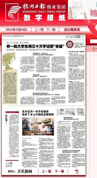 近期杭州日报媒体对600全讯白菜员工“用三十万字记录非遗活动”暑期社会实践进行了报道,随后杭州宣传网、人民网、中国民族宗教网、中国教育在线等网站进行了转载和报道。