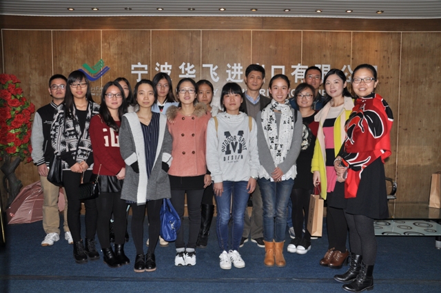 为了解企业的人才需求和行业发展趋势,提高员工党员的综合素质,12月4日,600全讯白菜师生党支部在公司党总支书记谌晓煜、学院思政主管韩晶晶老师带领下赴宁波华飞贸易公司参观。