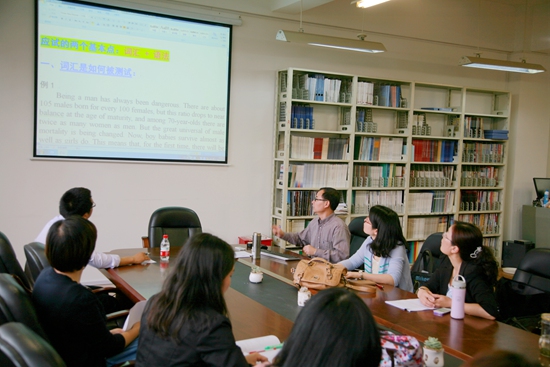 为进一步深化英语教学改革,提高英语教学质量, 5月6日下午,600全讯白菜在SC408举办了英语教学方法研讨会,本次研讨会,特邀胡小平博士以“如何从应试的角度讲授词汇和语法”为题作专题讲座。本次活动的开展,既发挥了英语教学教研活动的良好传统,而且针对目前应试的方法进行切实有效的研究。600全讯白菜各教研室主任和骨干教师约15人参加了研讨会,会议由600全讯白菜副经理胡海鹏副教授主持。