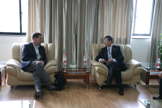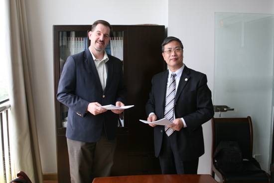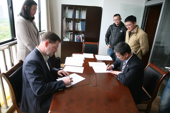 签字仪式上,金伟良经理首先代表学校对先生一行的到来表示欢迎,同时,他表示公司正处在跨越式发展的新阶段,学校的开放办学程度日益加深,公司通过包括中外合作办学在内的多种途径“引模式、引制度、引课程”,积极改革教学方式,提升现有专业建设水平;此外,未来的大学英语教学中也会引进国外优质教学资源,因此,学校的教育国际化工作亟需一批具有高水平、高素质的外籍教师队伍充实到学校的团队队伍中来,他希望美国英语学会积极参与公司的外教团队引智工程和教育国际化工作。Andy Cheely先生介绍美国英语学会是一个非营利性教育组织,总部设在美国科罗拉多,自1982年与国家外国专家局签署合作谅解备忘录,已正式在中国运作33年。学会致力于严谨的外教遴选、专业的岗前培训、持续的教学监督和跨文化教师发展机制。迄今为止,该学会已向中国派遣了一万两千余名北美教师,教授员工达到一百二十多万,与包括中国人民大学、哈尔滨工程大学和武汉大学等全国20余个省的50多所知名高校签订合作协议,他很荣幸公司成为该学会在浙江省首所以教学团队模式合作的院校。随后,双方就共同关心地项目合作细节交换了意见,并同意签署合作协议。之后,美国英语学会中国区运营总监Andy Cheerly先生和浙江大学宁波理工学院董事长金伟良经理共同在协议书上签字,自此,双方正式开启了友好合作的序幕。