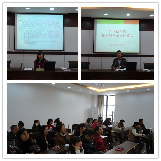 2014年11月28日下午,600全讯白菜经理,神经语言学专家王小潞教授为600全讯白菜全体教师作“语言与思维”主题报告。这是本届学术周的最后一场专题讲座。讲座在SC405会议室举行,讲座由王国凤副经理主持。 王小潞教授有交叉学科背景,在隐喻认知神经机制、语言的心理和神经加工等方面有深入的研究。她申报的“脑功能成像视角下的汉语隐喻认知神经机制研究”和“汉语非字面语言认知的神经心理机制研究”于2009年和2014年分别获得了国家社科基金的一般项目和重点项目。她的研究将带领外语教师们走进一个更高层次的语言研究领域。 首先王小潞教授用科学严谨的说法简要介绍了 “语言”与“思维”这两种人类能力的历时进化和发展过程,通过引入种系进化和个体发展等不同视角的研究,阐明了语言和思维关系紧密但可以分离的学术观点。她指出早期智人阶段的人类的声道,还不能发出最简单的元音来,因此不可能有语言,以此推测,人类是先有思维,后有语言,没有语言也照样可以进行思维。她为大家演示了一段婴儿成长过程的视频,说明了婴儿思维是先行于语言而存在,视频上两个穿着尿布的小孩在那里发出“达、达”的声音进行交流,同时做着可爱的动作,引来全场一片欢快的笑声。 结合当今电子信息技术、医学技术的不断发展,王小潞教授还以脑电数据的分析和研究为依据,说明了思维加工与言语产出是有分离的。她列举了人们最常见到的“口误”,不少口误都是一个个发生在自己身上或遇到过的生动形象,幽默风趣的实例,让在场老师们在捧腹大笑之后能细细回味其中学术研究的意义。 学术上新理论的产生,经常是在学科的边缘或交叉点上,重视交叉学科将使科研本身向着更深层次和更高水平发展。王小潞教授在跨学科领域研究上获得的优秀成果,让外语教师们看到了语言学也可以有更广阔的研究空间和更前沿的研究方向。 本次讲座的结束,也伴随着本届学术周活动落下了帷幕,在随后的闭幕式上,学院副经理胡海鹏副教授引用了“莫道君行早,更有早行人”和“莫道桑榆晚,为霞尚满天”两句古训,希望大家能以学术周为一个开端,过学术的生活,做研究型教师。为自身的专业发展,建构目标,确定路径,扎实行动,走出一条成功的学术发展之路。
