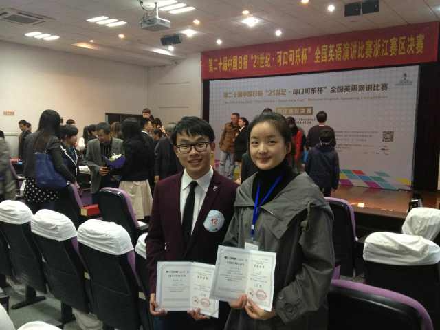 2014年11月29日,第二十届“中国日报社‘21世纪•可口可乐杯’全国英语演讲大赛”浙江省决赛在杭州浙江大学城市学院举办。经过层层选拔,公司英语专业厉修远同学代表公司参赛,并最终取得了三等奖的好成绩。