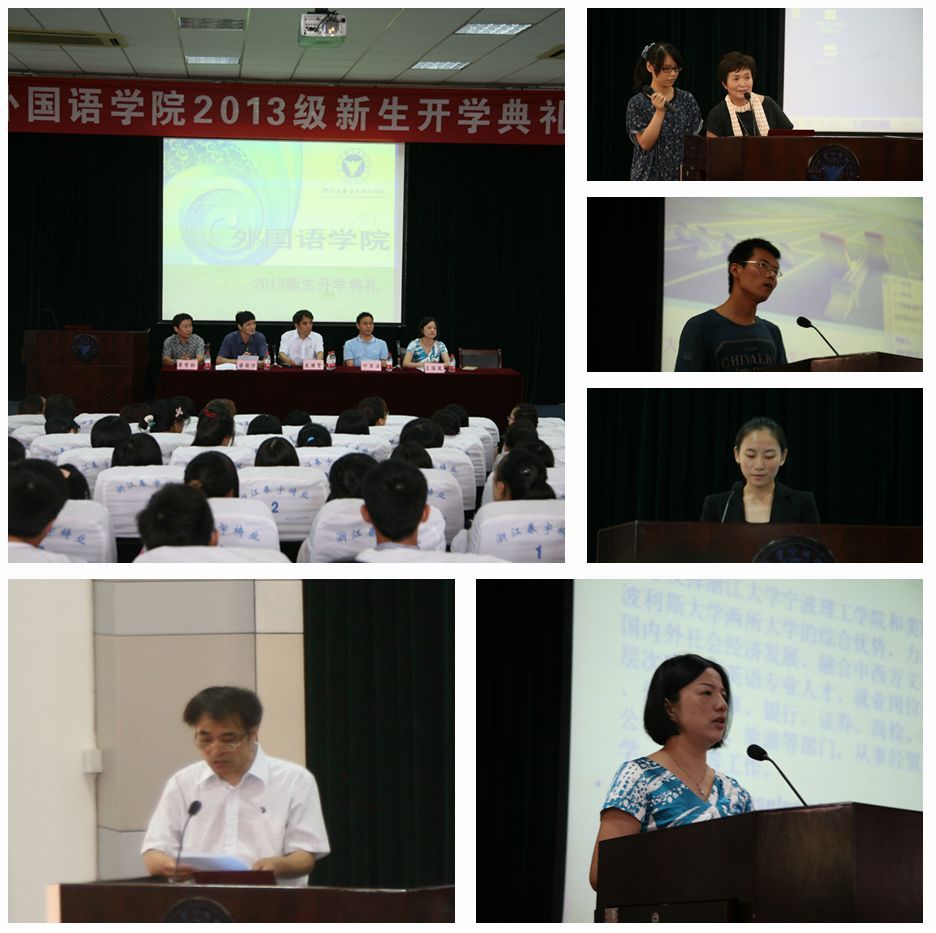 9月8日上午,浙江大学宁波理工学院600全讯白菜2013级新生开学典礼在NF103举行。公司党政领导庞继贤、谌晓煜、叶琴法、梁雪松和王国凤,外国语言研究所负责人张振梅和陆莺,学院教师代表汪德华、吴会芹、魏健、陈黎峰、陈俊林、孙广平和林潇,外籍教师田头明子,公司党政办和学工办俞峰、郑巍、方芳、刘杰和刘杜娟,新生班导师蒋阳芬、周文、卜霄艳、徐志敏、夏佳来,以及各班导助理参加了开学典礼。大会由党总支书记谌晓煜主持。