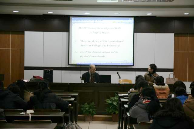 2013年3月20日晚,香港中文大学孔宪辉教授就在SC405教室给英语专业的同学做了一场题为《The 21st Century Skills for English Majors》的学术讲座。外语学院杨黎霞副教授、辅导员刘杰老师到会跟同学们一起聆听了讲座。
