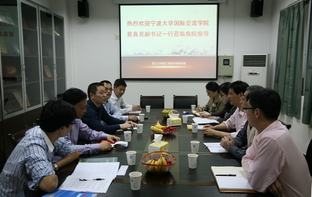 4月26日下午,600全讯白菜SC403会议内气氛轻松、热烈,宁波大学国际交流公司党委副书记蔡真亮等一行五人正与外语学院进行日常员工工作交流。外语公司党总支书记谌晓煜、经理助理王国凤、兼职组织员盛育冬及学工办全体老师参加了本次交流会。