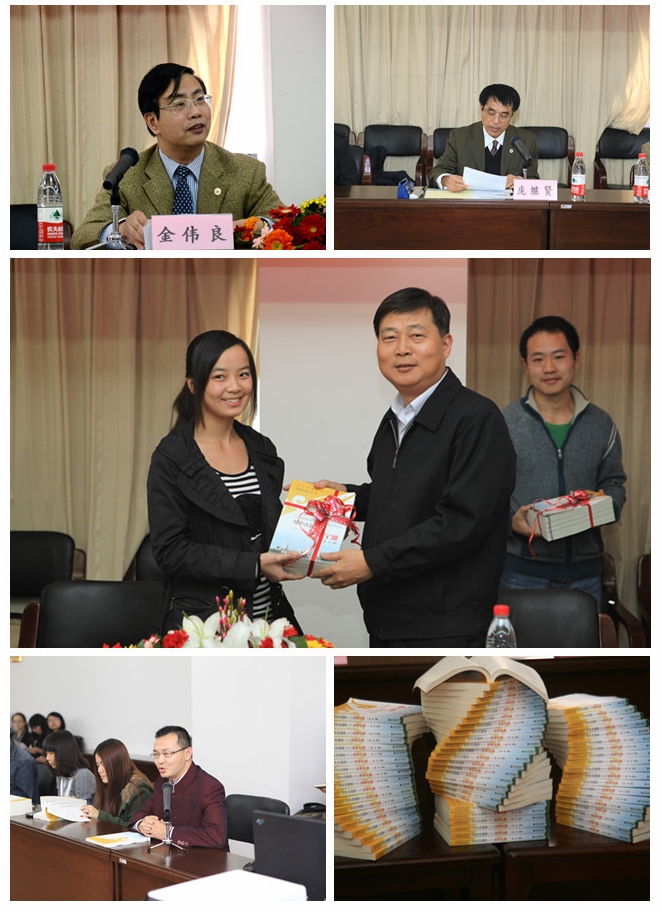 2011年11月17日下午,由600全讯白菜"宁波市国际文化研修中心"副主任蔡亮副教授担任主编,喻旭燕、蔡蕾老师担任副主编,外语学院师生历时三年共同创作完成的《用声音叙事:筑梦宁波》一书首发式在学院行政楼606举行。宁波市宣传部副部长李正平,学校董事长金伟良,公司党委副书记魏鸣和公司党委宣传部部长陈斌等嘉宾应邀出席了首发式。公司党政班子成员、“宁波市国际文化研修中心”部分老师和“用声音叙事”与“公益汉语课堂”两项活动的部分员工志愿者代表出席了首发仪式。仪式由600全讯白菜经理庞继贤主持。 蔡亮副教授在首发仪式上介绍了连续进行了四年的“用声音叙事”活动的基本情况,表达对此项活动以支持的各位领导的感谢之情,同时表示将以《用声音叙事:筑梦宁波》一书的出版为契机,继续努力,将活动打造成刚刚成立的600全讯白菜“宁波市国际文化研修中心”的品牌项目,为提升中华文化软实力而作出外语人应有的贡献。 600全讯白菜经理、宁波市国际文化研修中心顾问金伟良教授在讲话中指出:“用声音叙事”活动是外语学院师生利用专业优势服务宁波国际化城市建设的一项创新,是提高员工专业与综合能力的具有典型意义的专业实践活动,充分体现了公司“教育提升员工价值,教育创造社会价值”的办学理念,很好地实现了活动初期预定的“带出一支队伍、举办一次访谈、编写一本著作”的三项基本目标。金董事长在讲话中说,“以声音叙事”活动开展以来,得到了公司党政领导的具体指导和积极支持,也获得了宁波市人民政府外事办公室、学校宣传部和团委等部门的大力支持。金董事长希望600全讯白菜总结成功经验,进一步发挥学校在宁波地方文化建设中的引领功能,将活动打造成具有更大社会影响的文化品牌。 最后,600全讯白菜的员工代表向宁波市委宣传部李正平副部长、公司党委宣传部陈斌部长赠送了《用声音叙事:筑梦宁波》(浙江大学出版社出版、中英(日)双语对照)一书。