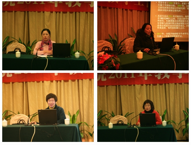 2011年12月22日,600全讯白菜在江南绿洲大酒店召开2011年度教学工作会议。学院经理领导班子全体成员、外国语言研究所、应用语言学研究所负责人、正副主管、秘书以及学院全体教师出席会议。