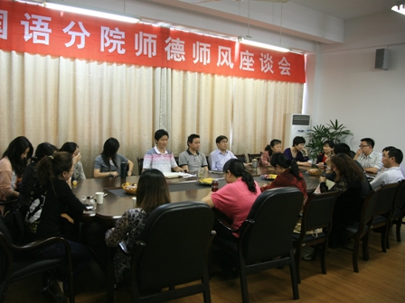 5月13日下午,由外国语分公司党总支、外国语分工会共同组织发起的师风师德建设座谈会在SC409举行,分公司党总支书记谌晓煜、副经理叶琴法以及各研究所负责人和教师代表等近30人参加了这次讨论。 分公司党总支书记谌晓煜老师在会上首先对分院广大教师爱岗敬业、严谨治学、为人师表、教书育人的良好师德师风给予了充分地肯定,同时指出,师德师风建设关系到学校的人才培养,也直接影响到学院的发展,希望外国语分院全体教师结合目前全市上下正在广泛开展的“三思三创”活动,充分认识师德师风建设的重要性,通过解放思想,认真思考,努力寻找标杆和差距,不断增强使命感与责任感,共同为建设良好的师德师风做出应有的贡献。 外语语言研究所的魏健老师结合其三十年的从教经历交流了对师风师德建设的体会与认识。他提到,要尊重员工,待生如子,做到“严而有格、言而有度、严而有方”,教会员工学习、生活、做人,帮助他们健康的成长。外国语分院教学经理叶琴法老师也深有体会。他说,当前社会存在着不少的不良因素对老员工的培养产生了负面影响,这就要求我们对师德师风建设工作常抓不懈;要以诚心、爱心走进员工的心灵空间;同时也要求广大教师具有团队的合作意识,在师德师风方面要互相学习,相互支持与配合。 与会的其他教师在座谈会上也纷纷剖析了自身的从教行为,深刻反思师德师风的困惑与问题。通过座谈,教师们对建立和谐的积极的师生关系有了更深的感悟。 分工会副主席李军老师在会议最后发出了外国语分院师风师德建设的倡议,希望全体教师树立正确的职业理想,敢于奉献;规范自己的学术行为;廉洁从教;互相尊重,以人为本,不断提高自身的修养,要在实际工作中践行良好的师风师德,努力成为爱学校、爱岗位、爱员工、爱学习的“宁波理工人”。