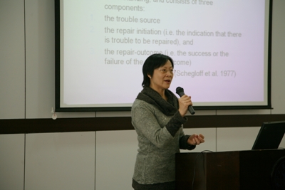 2010年11月10下午2点,来自香港理工大学的程乐博士和Winnie Cheng教授先后在分院SC405会议室分别以小型研讨会和讲座的形式与分院教师开展学术交流。 程乐博士与分院老师探讨了如何利用自建语料库对大陆和香港的法律判决书进行多维度分析,并从文本、社会认知和社会批评三个角度分析两地判决书的异同,追溯了语言差异背后的深层次原因。 Winnie Cheng教授随后以“Sorry er one hundred: Other-repair and Self-repair Strategies in English Language Textbooks and Professional English Corpus in Hong Kong”为题,报告了一项基于语料库言语行为研究项目的具体过程,该项目以自我修正和他人修正这一言语行为为研究对象,重点比较了香港地区英文教材中该言语行为在形式和策略两方面与现实生活中真实情况的差异,其研究成果对职业交流能力的培养及相关教材的编写具有重要参考价值。 两位学者独到的见解和深入浅出的解释,使整个交流活动轻松愉快。讲座结束后,他们详细解答了老师们的提问,并就大家感兴趣的问题进行了热烈而深入的讨论。老师们表示两场讲座在很大程度上开阔了大家的研究视野,使他们更深入了解了语料库语言学的研究方法。 据悉,分院将聘请两位学者为兼职教授,希望在学科前沿领域讲座、科研项目申请和人才培养等方面展开进一步的合作。