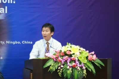 研讨会中方主席许为民教授在开幕式上做主旨发言 外语分院梁雪松副经理在开幕式上致辞