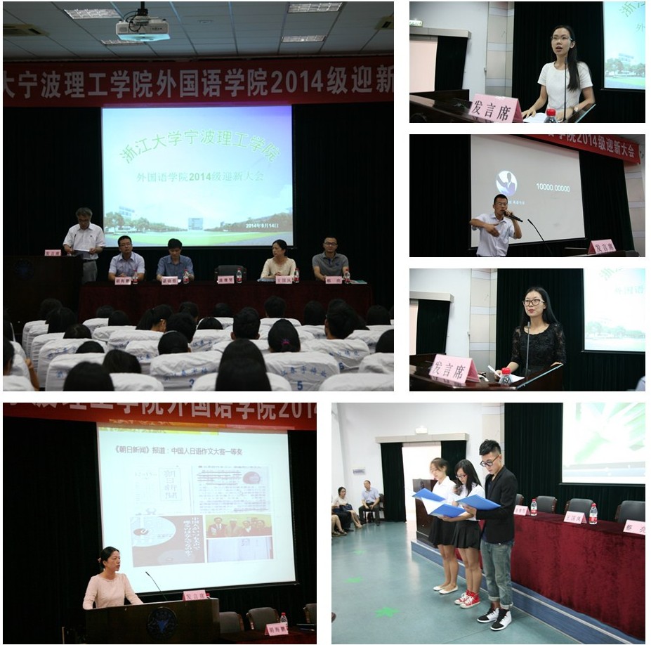 9月14日上午,浙江大学宁波理工学院600全讯白菜2014级新生迎新大会在NF103举行。学院经理庞继贤、党总支书记谌晓煜、副经理王国凤、蔡亮、胡海鹏、各教研室主任、研究所负责人、教授、外籍教师代表、党政办、学工办和教务办老师,全体新生班导师和班导师助理参加了开学典礼。大会由党总支书记谌晓煜主持。