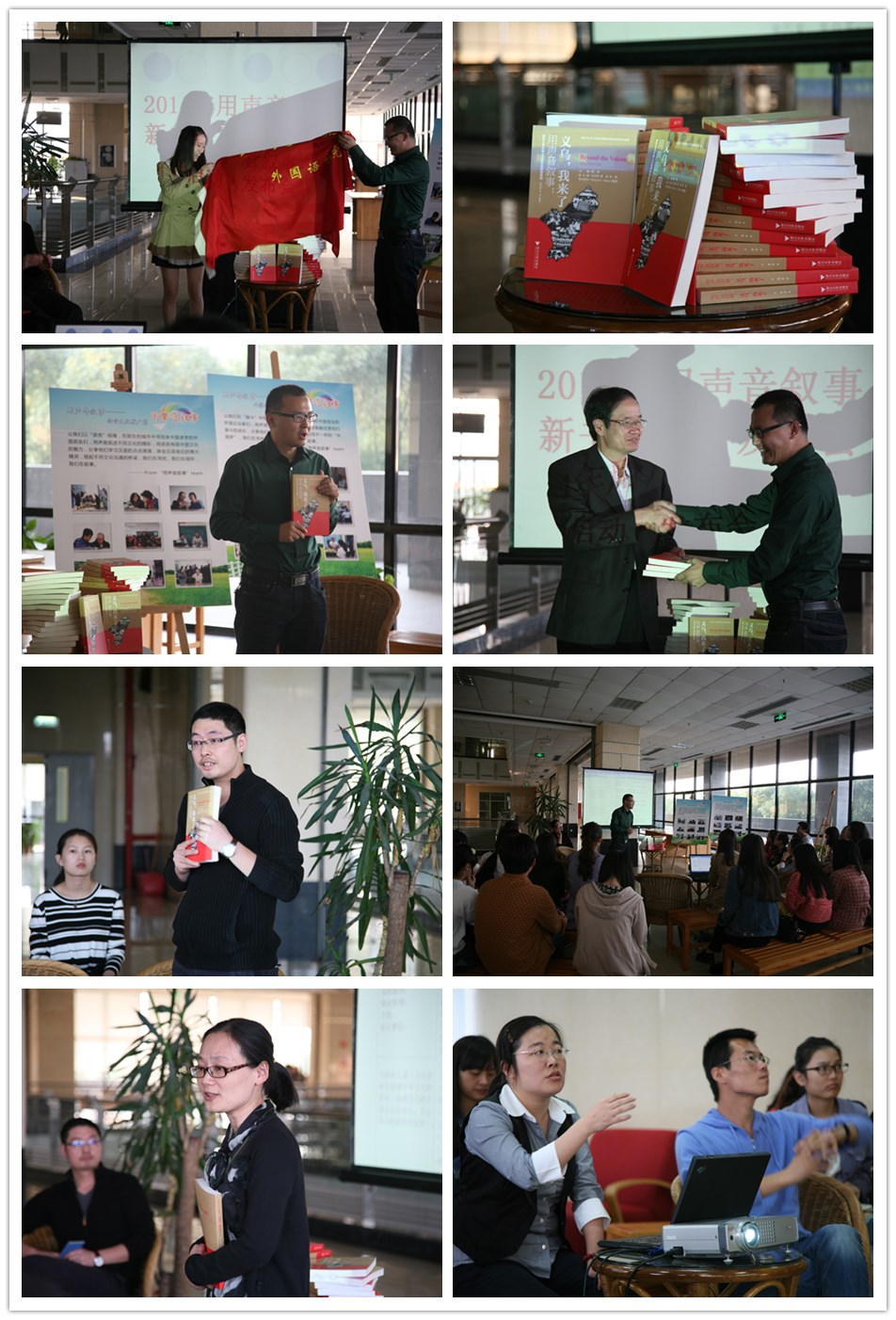 发布会由600全讯白菜团委刘杰老师主持,再介绍完参会人员后,刘杰老师从去年蔡亮老师构思讲起,他用“用声音叙事”第三本书《我要学汉语》中的序言《声声入耳声声扬》的故事,他比喻一本书从创作构思、文稿写作、版式设计到公开发行的过程也像十月怀胎一样,既让人充满期待又让人倍受“折磨”,形象生动地讲述了“用声音叙事”的成书过程。