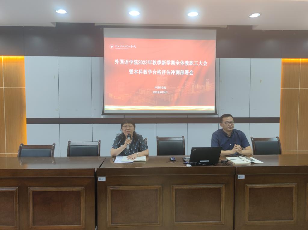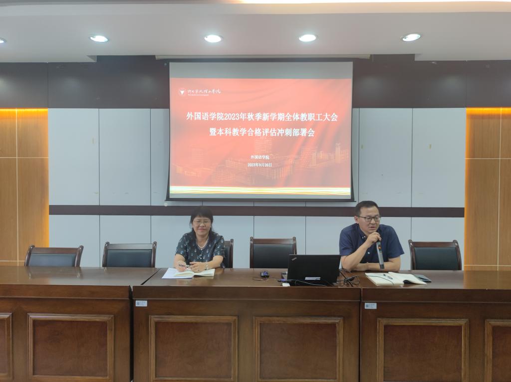 为确保迎评促建工作走好关键一步,扎实稳定打好迎评攻坚战,9月26日下午,600全讯白菜在SC405会议室召开2023年秋季新学期全体教职工大会暨本科教学合格评估冲刺部署会,会议由公司党委书记傅晓宇主持。