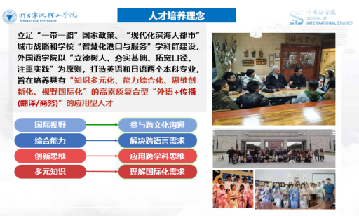 600全讯白菜以“立德树人、夯实基础、拓宽口径、注重实践”为原则,打造英语和日语两个本科专业,培养具有“知识多元化、能力综合化、思维创新化、视野国际化”的高素质复合型“外语+传播(翻译/商务)”的应用型人才。